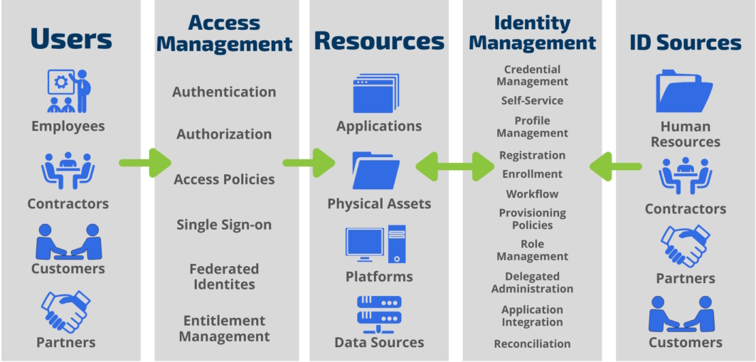Identity and access management (IAM) refers to the processes, practices, and technologies related to managing identity information, including authentication, authorization, and accounting. IAM helps ensure the access rights of individuals are applied as needed based on their business roles or relationships in an organization. It is the combination of business processes, policies, and technology solutions that enable an enterprise to manage the roles and privileges for personal users and devices to be able to access business systems. Gartner provided a wacky definition of IAM: “The discipline that enables the right individuals to access the right resources at the right times for the right reasons.”