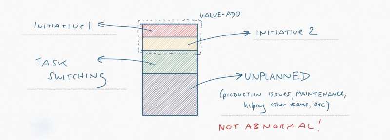 It is not uncommon to have teams paying 75% “interest” on a combination of unplanned work and task switching. The team may not even be paying down the principle. It’s literally overhead, and often never tracked in the ticketing system. Most likely, the team complains about this (it is a terribly uninspiring situation). But ignored long enough, they accept the dismal reality.